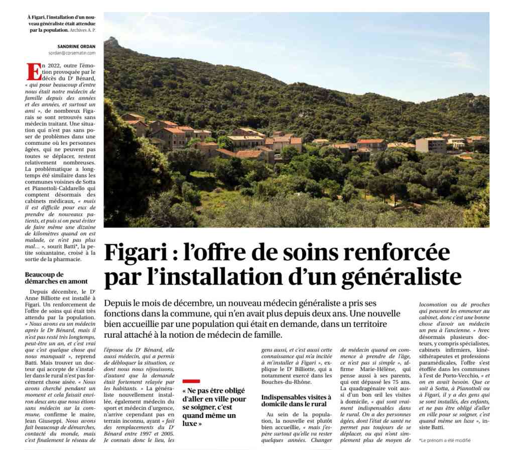 Corse Matin revient sur l’installation du nouveau médecin sur notre commune.